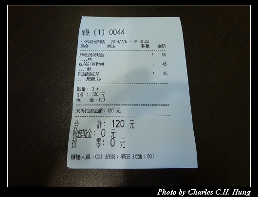 ▼ 這天點了三個鬆餅與一杯飲料,只花了120元,這樣的價位很適合公司拿來當下午茶的餐點,小木屋也有提供外送服務,有需要的公司可以打電話去訂餐。