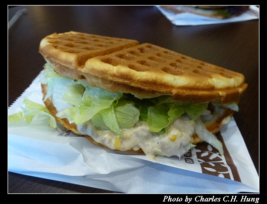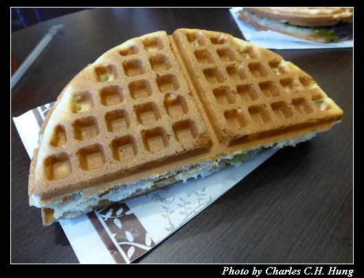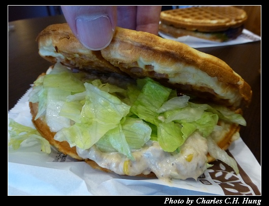 ▼ 鮪魚蔬菜鬆餅,裡頭用鮪魚沙拉醬與生菜一起,份量還滿多的,由於這家的鬆餅是現點現做的,因此需要等待比較久的時間,要來吃的人要有耐心,店員送餐時還會提醒要趁熱吃,不過其實就算冷掉了還是很好吃的。