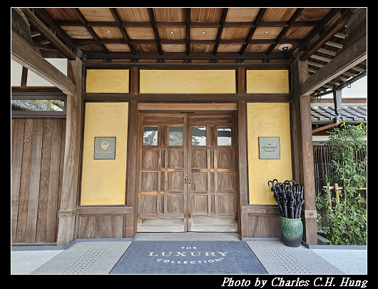 ▼ 這個大門是自動門,接近就會自動開啟,兩旁分別掛了SHISUI HOTEL NARA,與The Luxury Collection的牌子,奈良紫翠豪華精選酒店是萬豪集團在奈良的第一家「奢華」系列酒店。目前在整個關西地區,除了奈良紫翠外,還有京都嵐山翠嵐豪華精選飯店(Suiran, a Luxury Collection Hotel, Kyoto),唯二的奢華系列酒店。