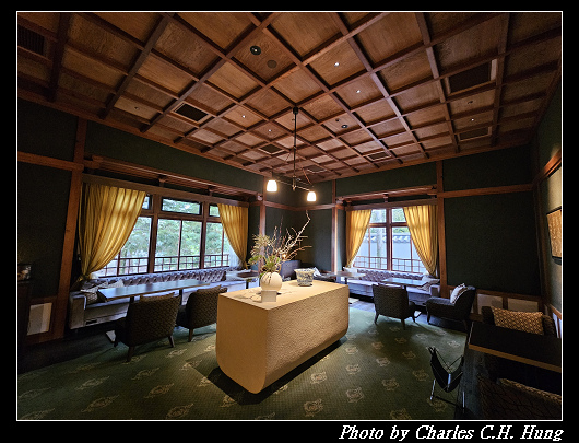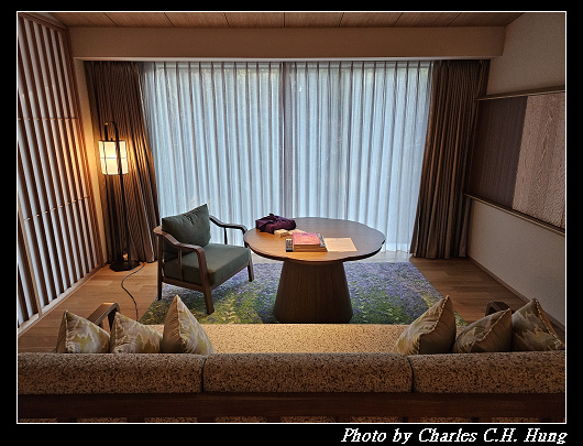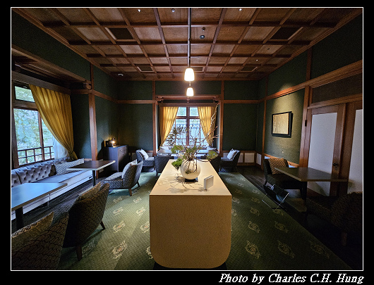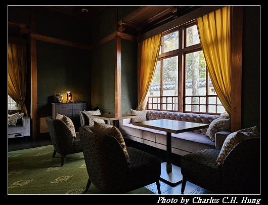 ▼ 這個房間就在主樓建築的拐角處,二側都有對外窗,因為也做為飯店Lounge使用,內部的座位設計比較像是咖啡廳,有可以用餐的桌子供使用,有點融合了日洋式的建築風格設計。