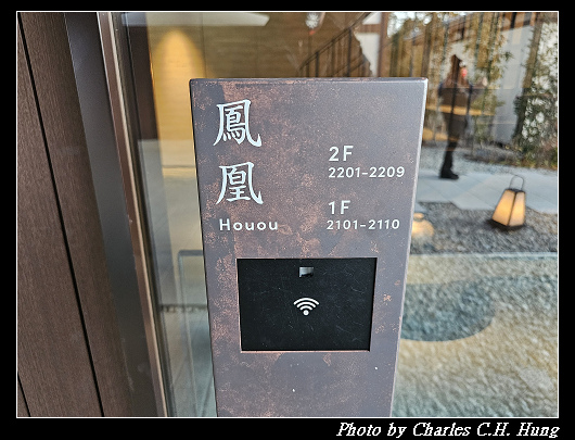 ▼ 右邊的這一棟,也就是我們住宿二晚的地方,名為「鳳凰」,如果房號沒有跳號的話,在鳳凰裡面一共有19個房間,房間數比較少,應該是套房位於鳳凰裡面,佔用了比較多的樓層空間,所以房間數才比較少。門邊有感應房卡的位置,進入大門要刷房卡,所以安全性還是有的。