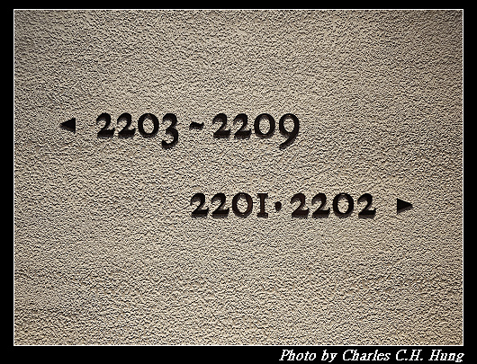 ▼ 在二樓一共有九間房間,只有2201及2202要往右走,其餘的七個房間都是往左走,我們這次入住的是2208,就在樓層的最遠處,要繞過走廊才會抵達。