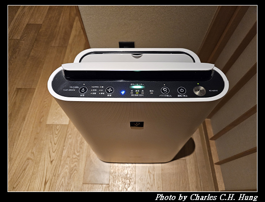 ▼ 配置了一部SHARP的空氣清淨機,在日本飯店的房間中都會有空氣清淨機,就算是一般的商務飯店也一樣有,進到房間後,打開這部機器,可以讓室內的空氣更加清新。