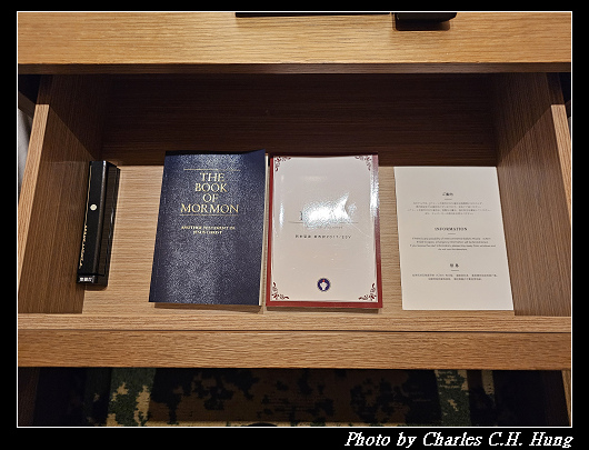 ▼ 最下方的抽屜內還有一盒茶包,但我們不確定這盒茶包是不是免費的,雖然價目表當中沒有這一項,但常理判斷,應該不會有飯店會提供一整盒的茶包給房客吧,而且看起來質感還不錯,考量之後,後來我們就直接放著了。